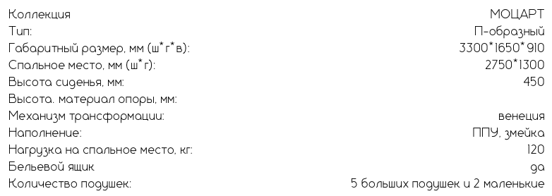 МОЦАРТ П-образный диван