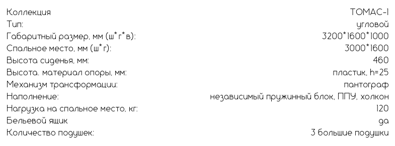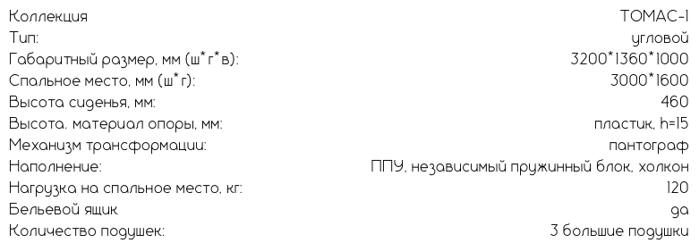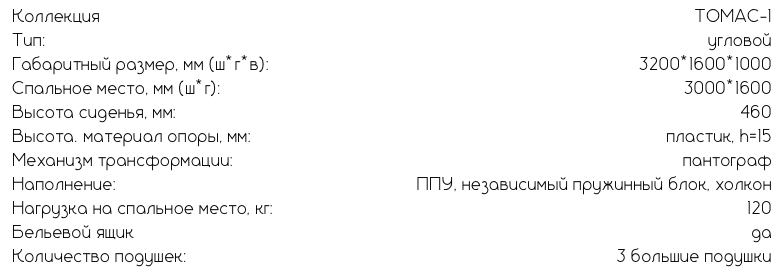 Диван «Томас 1» — это сочетание комфорта, уюта и качества в современном стиле. Диван обладает глубокой посадкой, а приспинные подушки позволяют создать удобное место для отдыха. Элегантно выглядят узкие мягкие подлокотники с объёмным кантом. Угловая модель с оттоманкой займёт своё идеальное место даже в небольшом пространстве. Спинка дивана выполнена в обивочной ткани, что даёт возможность использовать его для зонирования комнаты. Идеальное спальное место для ежедневного сна.