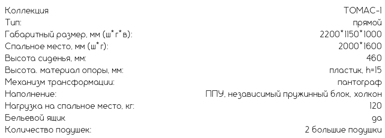 Диван «Томас 1» — это сочетание комфорта, уюта и качества в современном стиле. Диван обладает глубокой посадкой, а приспинные подушки позволяют создать удобное место для отдыха. Элегантно выглядят узкие мягкие подлокотники с объёмным кантом. Угловая модель с оттоманкой займёт своё идеальное место даже в небольшом пространстве. Спинка дивана выполнена в обивочной ткани, что даёт возможность использовать его для зонирования комнаты. Идеальное спальное место для ежедневного сна.