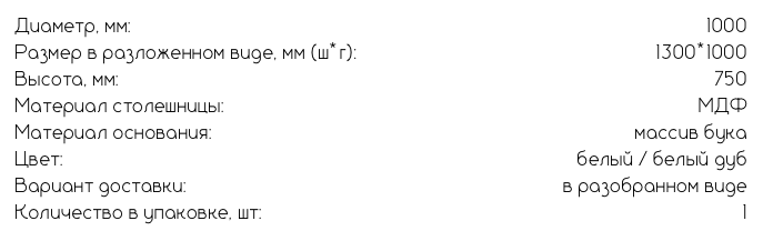 Раздвижной стол «Оксфорд» — элегантное решение для кухни или столовой, сочетающее в себе классическую форму, натуральные материалы и практичность. Круглая столешница диаметром 1000 мм идеально подходит для ежедневного использования, а при необходимости легко раскладывается до 1300 мм, создавая дополнительное пространство для приёма гостей.