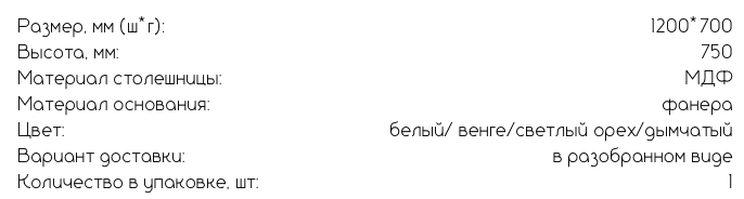 Столешница из прочного МДФ устойчива к износу и проста в уходе. А каркас из качественной фанеры гарантирует стабильность и долговечность — стол прослужит вам долгие годы.